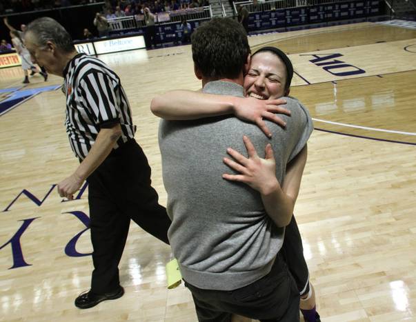 As the clock was winding down – Coach Frank Brow had pulled all of his starters except for Josie – she had the ball in her hands and was told to toss it out of bounds so that that coach could take her off the floor– If you know Josie, this was no easy task– but she did it and coach Brow met her as she came of the court: